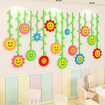 Karikatür animasyon 3D akrilik duvar Sticker anaokulu mutlu çocukluk ve bahar tema okul açılış sınıf dekorasyon